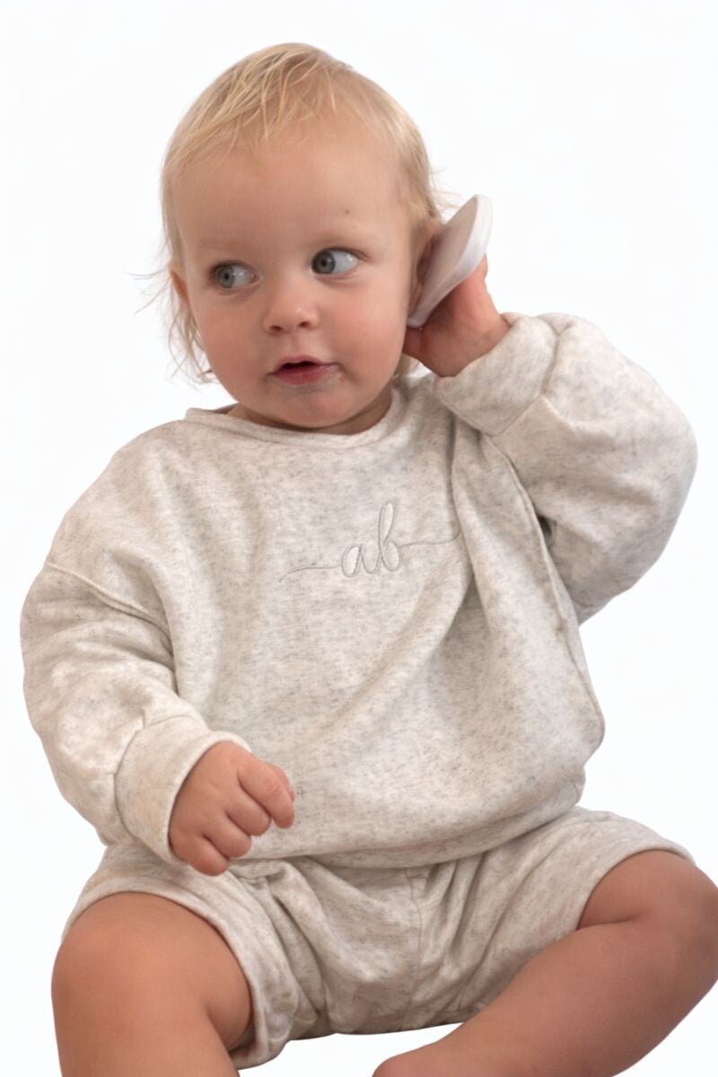 sweater, broek of jogging ook voor kids in de kleuren lichtgrijs, grijs en marineblauw